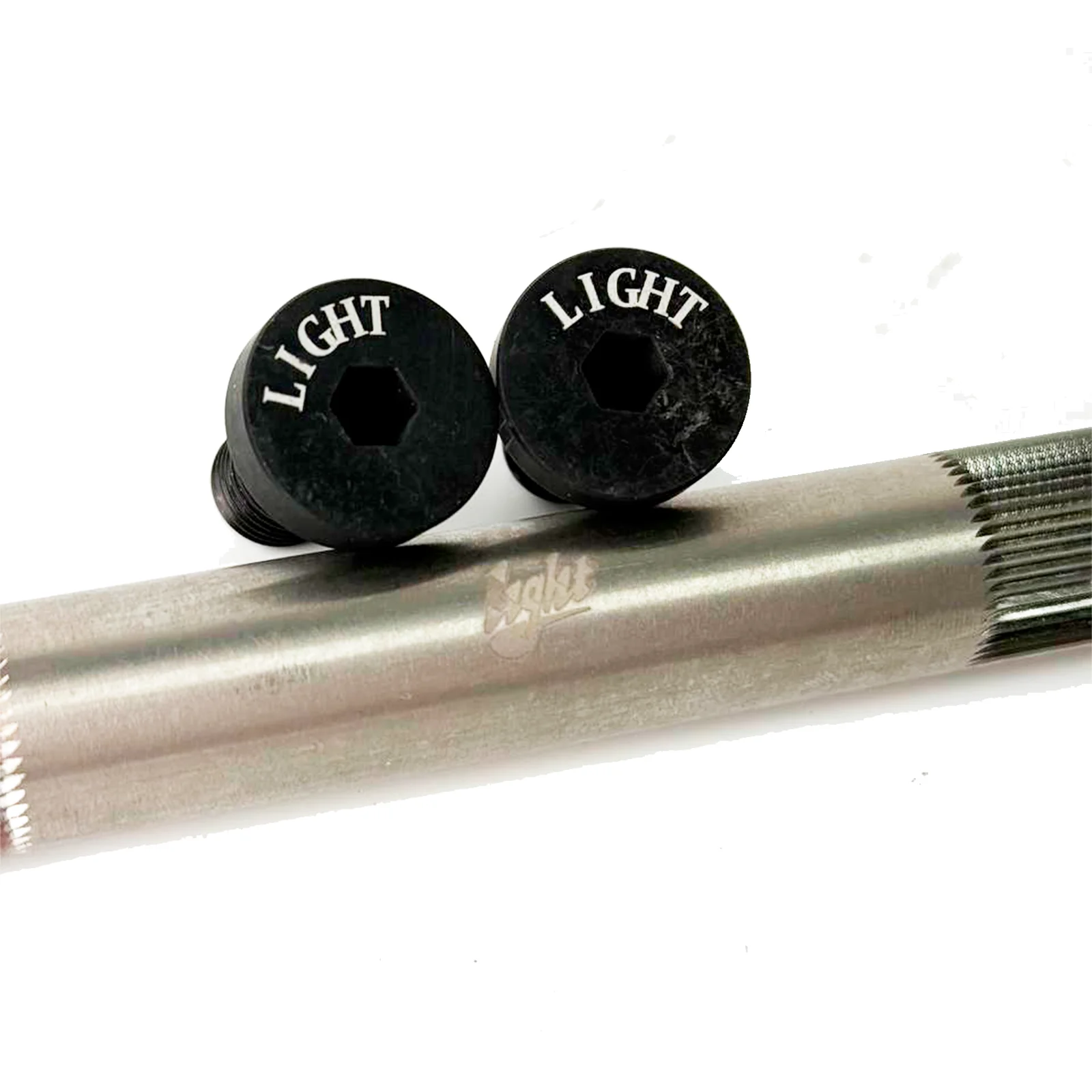 Титановый усиленный вал нашего производства! В комплекте идут болты из алюминия с гравировкой Light. Поможет сбросить вес с самого центра вашего байка, а значит делать випы станет еще проще. Подходит под большинство шатунов 22мм за счет того, что идет в комплекте с болтами