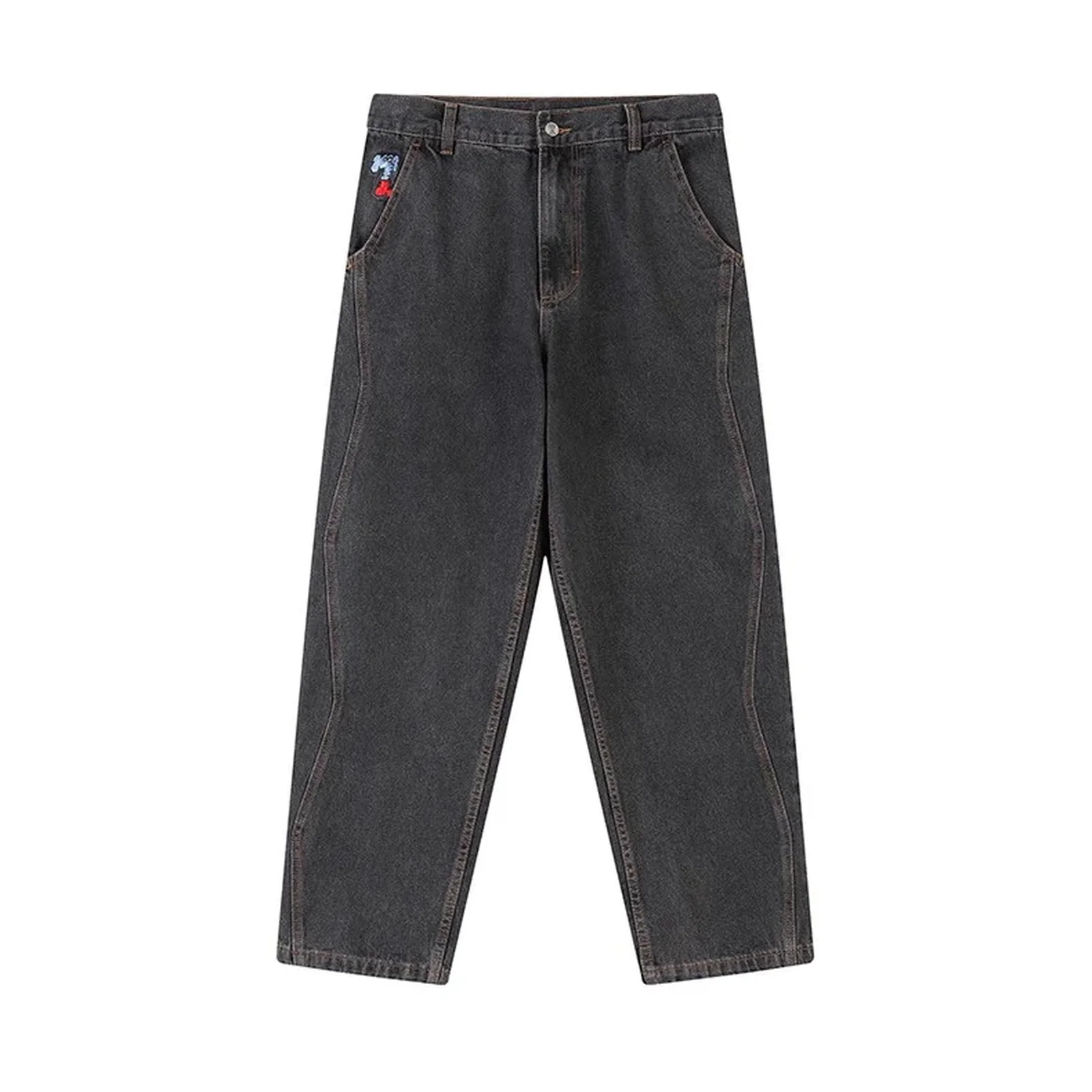 На кармане — фирменная вышивка со слоном, добавляющая изделию индивидуальность без излишней яркости. Джинсы выполнены в универсальном стиле унисекс и одинаково хорошо подходят подросткам и взрослым. Лаконичный дизайн позволяет сочетать их с базовыми футболками, худи и куртками